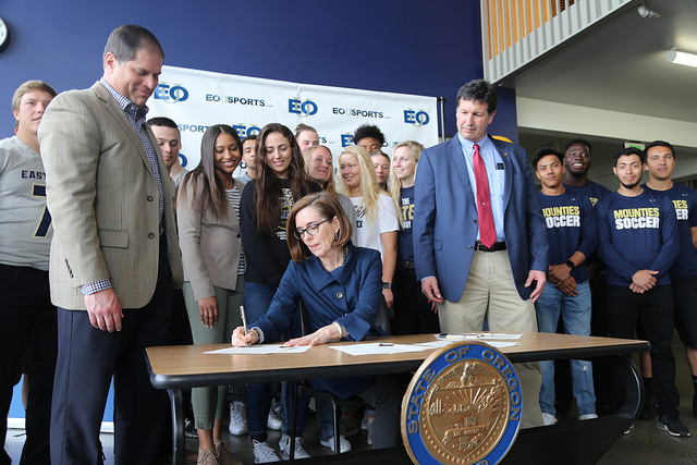 As part of the EOU campus visit, Governor Brown signed {HB 5702,](https://olis.leg.state.or.us/liz/2018R1/Measures/Overview/SB5702) which includes $9 million in capital funding for a new Fieldhouse. The new facility will provide flexible space for the region for physical activity, as well as an exercise lab and instructional space for EOU's physical activity and health degree program. Funding for the project is part of a larger, statewide investment packagethat includes new facilities on the campuses of Oregon State University - Cascades and the University of Oregon.