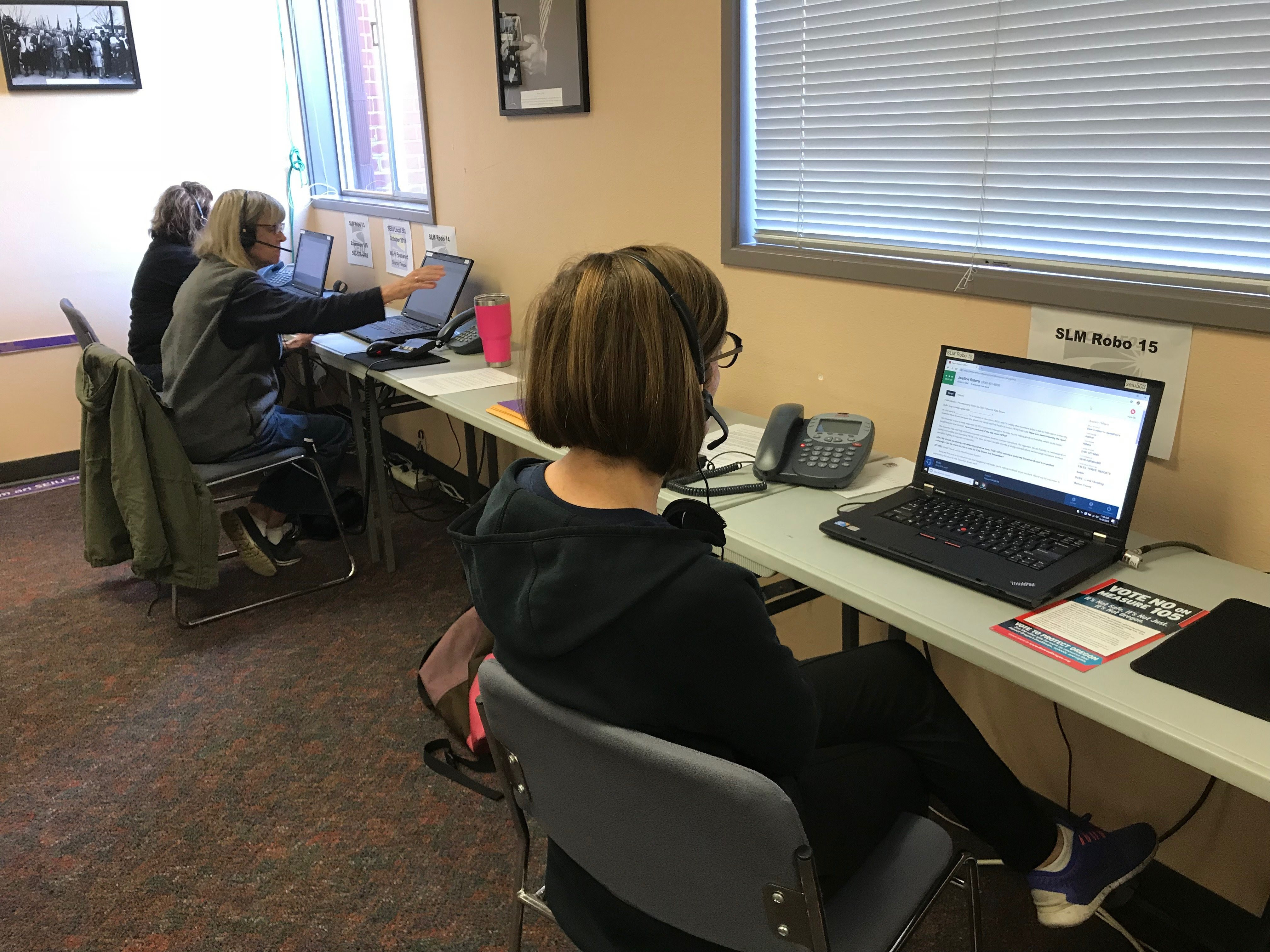 Governor Kate Brown makes phone calls to voters in Salem on Sunday at an event hosted by SEIU.